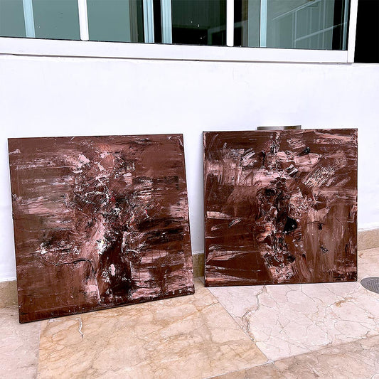 Cuadro original Abstracto SET X 2 -SERIE GRAY "BROWNIE"- 40 X 40 CM C/U