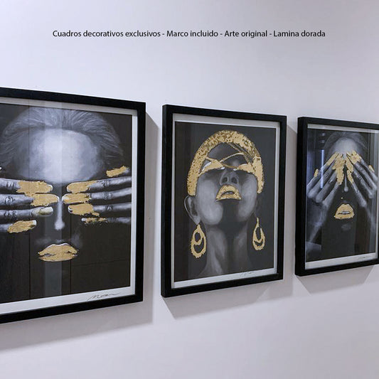 Ahorra 33%Cuadros Set X 3 BLACK FACE 40 X 50 CM C/U